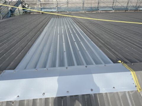 このように明かり取りの上に屋根を葺く工事です。